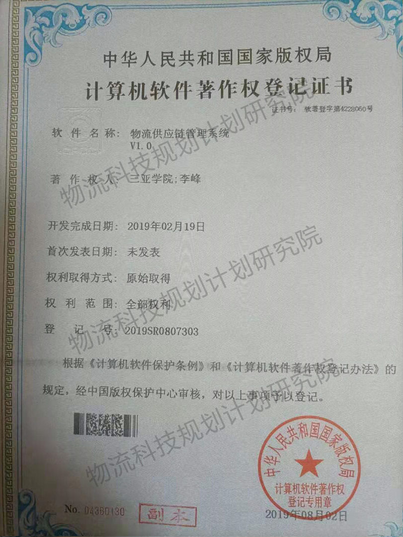 物流供應(yīng)鏈管理系統(tǒng)V1.0(證書號:第4228060號)