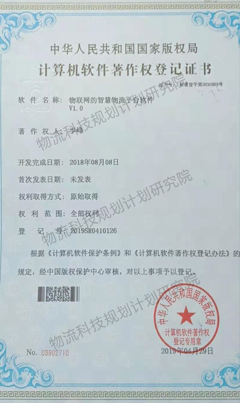 物聯(lián)網(wǎng)的智慧物流平臺軟件V1.0(證書號:第3830883號)
